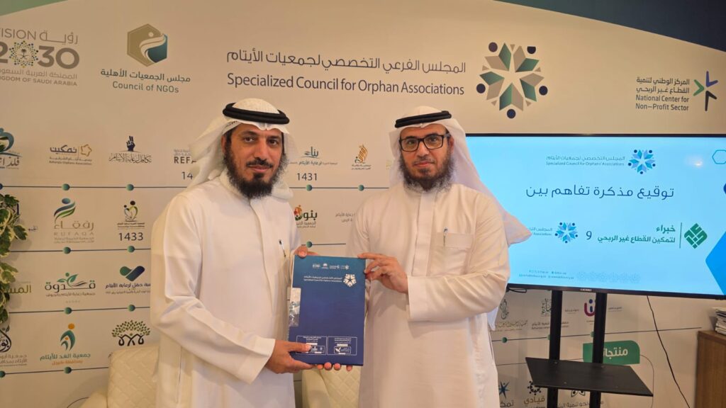 تم بحمد الله وتوفيقه توقيع اتفاقية شراكة وتعاون بين جمعية خبراء لتمكين المنظمات غير الربحية والمجلس الفرعي التخصصي لجمعيات الأيتام، وذلك يوم الخميس الموافق 1/1/2026م.